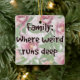 Este ornamento fala com quase todos com uma família! É um tom humorístico e amoroso para os peculiares caprichos que tornam a família especial. Ideal para aniversários, feriados, exércitos domésticos, ou só porque - é um presente atencioso para pais, irmãos, primos, ou qualquer pessoa que aprecie sua família "estranha". Segure-o numa árvore, mostre-o numa prateleira, ou use-o como uma etiqueta de presente - é certo que traz sorrisos e brilha memórias familiares afetuosas.