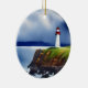 O ornamento do na moda apresenta um farol vermelho e branco sobre penhascos cobertos por grama que estão sobre o oceano e céus turvos no horizonte - uma aquarela digital gerada por IA. Personalizar com nome ou monograma
