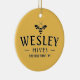 Seu nome apiário em um ornamento com uma abelha fofa estilizada e a mensagem FELIZ BEE no verso.