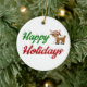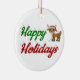 Ornamento De Cerâmica Feliz Holidays Reindeer Script de Natal