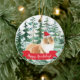 Um Enfeites de natal de Cachorro Collie Rough, com data bonita, em um fundo de pinheiros e pinheiros com a mensagem de feriado "Feliz Howlidays". Visite nosso compro para ver uma grande variedade de pães de cão
