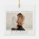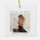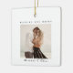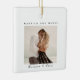 Foto Natal Moderna Feliz e ornamento cerâmico casado. O design apresenta um texto de escritura preto elegante em branco de marfim com espaço de fotos personalizado. Texto mostrado como Feliz e casado, Nomes de Casal, Foto colorida. O texto de trás mostrava 20XX Nosso Primeiro Natal Como, Sr. e Sra. Name, Data de Casamento e foto de segunda cor. Personalize com seu próprio texto e fotos. Convidamos você a visitar nossa loja Zazzle, Simon & Grace para ver produtos correspondentes e muito mais. Entre em contato conosco se precisar de assistência.