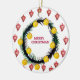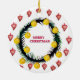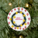 Feliz Natal, decoração Xmas, coroa verde e brinquedos vermelhos e amarelos.
