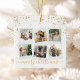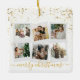 Enfeites de natal personalizado com uma colagem de fotos de estilo moderno com 6 fotos ao lado da elegante tipografia minimalista em cor dourada.