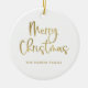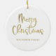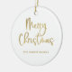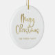 Ornamento De Cerâmica Feliz Natal | Faux Dourado em White Casual Script