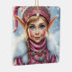 Enfeites de natal personalizado bonito com uma ilustração fofa de uma elfo menina de rosa com neve caindo no fundo. Você pode adicionar sua própria mensagem ao lado bonito do ornamento que está cheio de flocos de neve rosas e azuis.