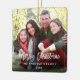 Ornamento de Fotos da Família Feliz de Natal - Quadrado, Script Branco - Fotos Frente e Traseira