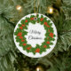 Ornamento De Cerâmica Feliz Natal Holly Wreath