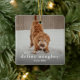 Uma engraçada Enfeites de natal de fotos de animais de estimação 2 com simples papais noeis queridos de tipografia, define saudação maldosa na frente. As costas têm uma segunda foto. Clique em editar para personalizar este design.