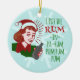 A retrógrada sorridente neste design engraçado de Enfeites de natal está segurando uma garrafa de rum e dizendo, "Eu coloquei o RUM em Pa-Rum Pum Pum Pum Pum." Ela está vestindo um chapéu de Papai Noel e sorrindo. Se a própria ideia do feriado te faz querer beber, então esta é a design hilariante para você.