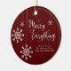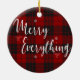 Feliz Tudo Personalizado Ornamento Cerâmico de Natal. Personalize este ornamento alterando o nome e o nome da família. O verso do ornamento tem padrão de Xadrez vermelho com " FELIZ TUDO " escrito em uma fonte bonito de script. Para mais personalizações, contacte-me em mypaperlove2021@gmail.com