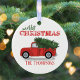 Ornamento De Cerâmica Feriado de Caminhão Vermelho com Foto Russo de Nat