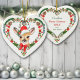 Neste ornamento, uma imagem aquosa de uma adorável criatura de cervo está no centro de uma bonito coroa de Natal em forma de coração. A coroa é feita de imagens de Férias, incluindo cones de pínus, bispos holly, lábios, bolbos de árvores e árvores de Natal. Tudo é colocado sobre um fundo branco. A parte de trás do ornamento tem a mesma coroa, com campos de texto personalizados em vermelho e verde para você personalizar. Perfeito para um pai ou um avô dar a um filho.