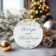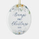 Este adorável ornamento de "Primeiro Natal de Bump" é uma maneira adorável de celebrar seu bebê que vem. Apresenta a aquarela floral com mirtilos e caligrafia moderna. Personalize facilmente com o ano. Design é o mesmo na frente e atrás do ornamento. Faz um presente de Natal excelente para os pais que esperam!