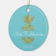 Mele Kalikimaka Faux Foil Dourado e Aqua Blue Pineapple Blue Ornament. Este Enfeites de natal havaiano é perfeito para uma árvore de Natal tropical. Entre em contato com o designer para obter itens correspondentes.