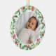 O primeiro enfeite de Natal deste bebê é decorado com coloração d'água, Holly e Mistura. Facilmente personalizável com a foto e o nome do bebê. Para editar ainda mais, use a Ferramenta Design para alterar a fonte, o tamanho da fonte ou a cor. Porque nós criamos a nossa trabalho de arte, você não encontrará esta imagem exata de outros designers. Original Watercolor © Michele Davies.
