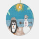 Um boneco de neve e um pinguim tiram férias para a praia.