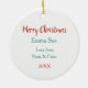 Neste adorável ornamento de Feriado, um adorável ursinho marrom veste um cachecol de inverno. O urso está rodeado por uma coroa azul e uma coroa vermelha. O verso do ornamento mantém o texto personalizado em cinco campos fáceis de alterar. Bonito para qualquer criança. Certifique-se de ver os ornamentos correspondentes na nossa loja.