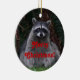 Para amantes da natureza! Um ornamento de Natal redondo, com a foto de um guaxinim de floresta giro desejando um Feliz Natal. Imagem impressa em ambos os lados. Selecione o seu estilo de ornamento. Um design de vida selvagem de animais divertido para as férias!