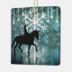 Este ornamento cerâmico da árvore de Natal apresenta um cavalo de repouso e um cavaleiro de silhueta com um belo fundo de flocos de neve noturna de inverno com luzes e uma superfície refletora. Personalize com um ano, nome ou qualquer outro texto que você queira adicionar. -