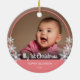 Ornamento De Cerâmica Flocos de neve Foto Rosa do Primeiro Natal do Bebê