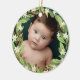 Belo Enfeites de natal floral com a sua dentro fotográfica, uma coroa floral de morango verde, flores brancas e morangos vermelhos. Adicione o nome do seu bebê e o ano nas costas.