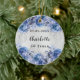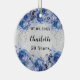 Ornamento De Cerâmica Flores azuis prateadas de aniversário