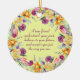 Este ornamento bonito tem um belo quadro floral com uma variedade de flores coloridas. A citação no centro diz "Um amigo verdadeiro entende o seu passado, acredita no seu futuro, e aceita você do jeito que você é". O verso diz: "Obrigado por ser meu amigo. Você quer dizer o mundo para mim." As costas são completamente personalizáveis para que possamos pôr o sentimento que quisermos, depois o vosso nome e o ano. Isso seria um presente tão sincero para um amigo no Natal!