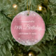 Crie seu próprio ornamento do círculo de 18 anos para sua filha. Personalize o texto do bloco e/ou o estilo da fonte de caligrafia. Altere o texto para qualquer aniversário especial ou de etapa. O fundo da arte digital apresenta uma falso cintilação prateada e uma folha de papel rosa-rosa típica. Na parte de trás, você pode adicionar uma foto da família se quiser personalizar ainda mais este presente. A adorno de aniversário de um milestone para ela.