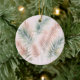 Este encantador ornamento de árvore de Natal é enfeitado com frentes floridas de folhas de palma rosa-pincelado e verde-macio num leve pano de fundo rosa. Dando-lhe a sensação dos trópicos.