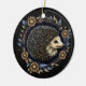 Ornamento De Cerâmica Folk Art Hedgehog em uma Terra de Flores Azuis