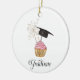 Pegue este ornamento para sua filha e seus amigos. Personalize com o ano de graduação e a escola. Este cupcake de graduação cor-de-rosa com formando em script de rico pode ser encontrado em minha loja, PageCreativeDesigns.