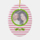 Primeiro Natal de casal/1rua, juntos, ornamento de fotos de casamento. Um design cor-de-rosa e branco com sua foto em um círculo verde.