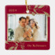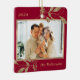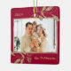 Ornamento De Cerâmica Foto da Família Dourada Folha Vermelha Natal