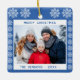 Ornamento De Cerâmica Foto da Família Feliz de Natal Blue Snowflake
