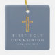 Ornamento Cerâmico Personalizado de Foto Religiosa Azul Na Primeira Comunhão. Parte do Pacote de Convite da Primeira Comunhão Dusty Blue Cross Boy com convite, papelaria e acessórios de festa correspondentes disponíveis.