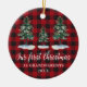 Script de Caligrafia Elegante Moderno, Árvores de Pinheiros de Aquarela, Xadrez de Buffalo Vermelho, Nosso Primeiro Natal como Ornamento de Avós - Foto de Volta