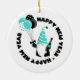 Ornamento De Cerâmica Foto de Ano Novo da Família Teal e Black Gnomo