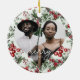 Framboesas bonito e pinhinhas com vegetação deixam o padrão de férias, com fotografia em forma de coração central e tipografia de feliz com Enfeites de natal do ano.