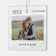 Ornamento De Cerâmica Foto de casamento de 1º Natal da feliz e casada
