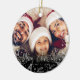 Este elegante e moderno ornamento de guardas tem "Feliz Natal" em cópias de script e um transparente floral branco ao redor da fronteira. Adicione a sua foto de família e coloque a data na base.
