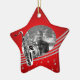 Enfeite de estrela vermelha com quadro fotográfico para seu tocador de saxofone favorito. Personalize com sua própria foto e altere o texto na parte traseira do ornamento para atender às suas necessidades.