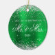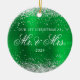 Crie seu próprio "Nosso Primeiro Natal como Sra. & Sr." circula ornamento fotocerâmico para recém-casados. Brilhante prateado e brilhante estilo metálico verde folha de papel digital. Adicione seu casamento ou imagem de lua de mel. Você pode personalizar o estilo de texto, a fonte ou as cores.
