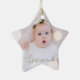 Sua foto favorita em um ornamento cerâmico em forma de estrela. Carregue sua própria imagem para criar ornamentos da árvore de Natal para você mesmo ou dê como presente para a família, amigos, pais e avós!