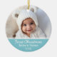 Ornamento De Cerâmica Foto de Natal do Bebê - Fundo do Blue Boy