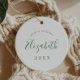 O primeiro ornamento fotocerâmico de recém-nascidos de Natal deste bebê verde é a perfeita decoração simples das árvores de Natal. O design apresenta a tipografia verde e branca clássica, emparelhada com uma fonte rustica, mas elegante, com estilo à mão. Este ornamento de manutenção diz "meu primeiro Natal". Personalize a frente com o nome do seu bebê e o ano. Personalize as costas com uma foto do seu bebê.