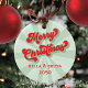 Este design apresenta uma foto de Natal fofa verde-doce, branca e festiva, uma simples ilustração familiar, uma tipografia retrorreflectora com tendências na moda, um nome personalizado personalizado, uma curiosa e criativa, única e legal, letra de texto de caligrafia com estilo vintage, uma decoração de natal minimalista simples, uma decoração de árvore de Natal personalizada