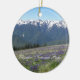 Um ornamento redondo que mostra uma imagem cênica de Montanhas de Olimpiadas cênicas e flores silvestres de campo, como visto do furacão Ridge, em Olimpiadas National Park, Washington. A imagem é impressa apenas num lado. Selecione o seu estilo de ornamento. Faz um viagem de souvenir excelente!