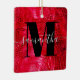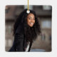 Crie seu próprio nome personalizado feminino e ornamento cerâmico quadrado monograma com sua foto no verso. Gradiente vermelho, arte digital falsa, gráfico de couro réptil. Monograma contemporâneo preto-e-branco com design de caligrafia elegante estilo assinatura.