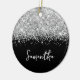 Ornamento De Cerâmica Foto de Silver Glittery e Black Glam Name